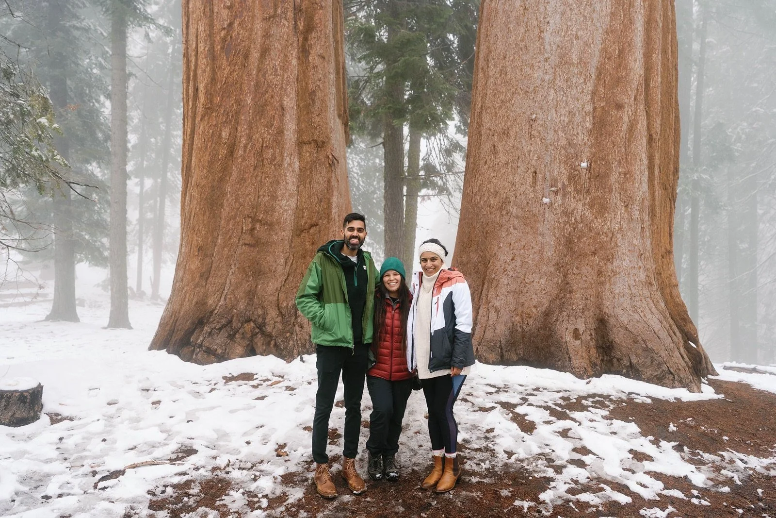 Tejas originally planned to propose at sunrise, which is such a magical time for Sequoia National Park proposal photos, but Mother Nature had other plans. A surprise snowstorm swept in and completely changed the vibe of the day. Luckily, being a local Sequoia photographer means I know how to shift fast!! I always have a backup plan or two ready to go. We decided to push their session to midday instead, and honestly, it ended up being even more perfect than the original plan.